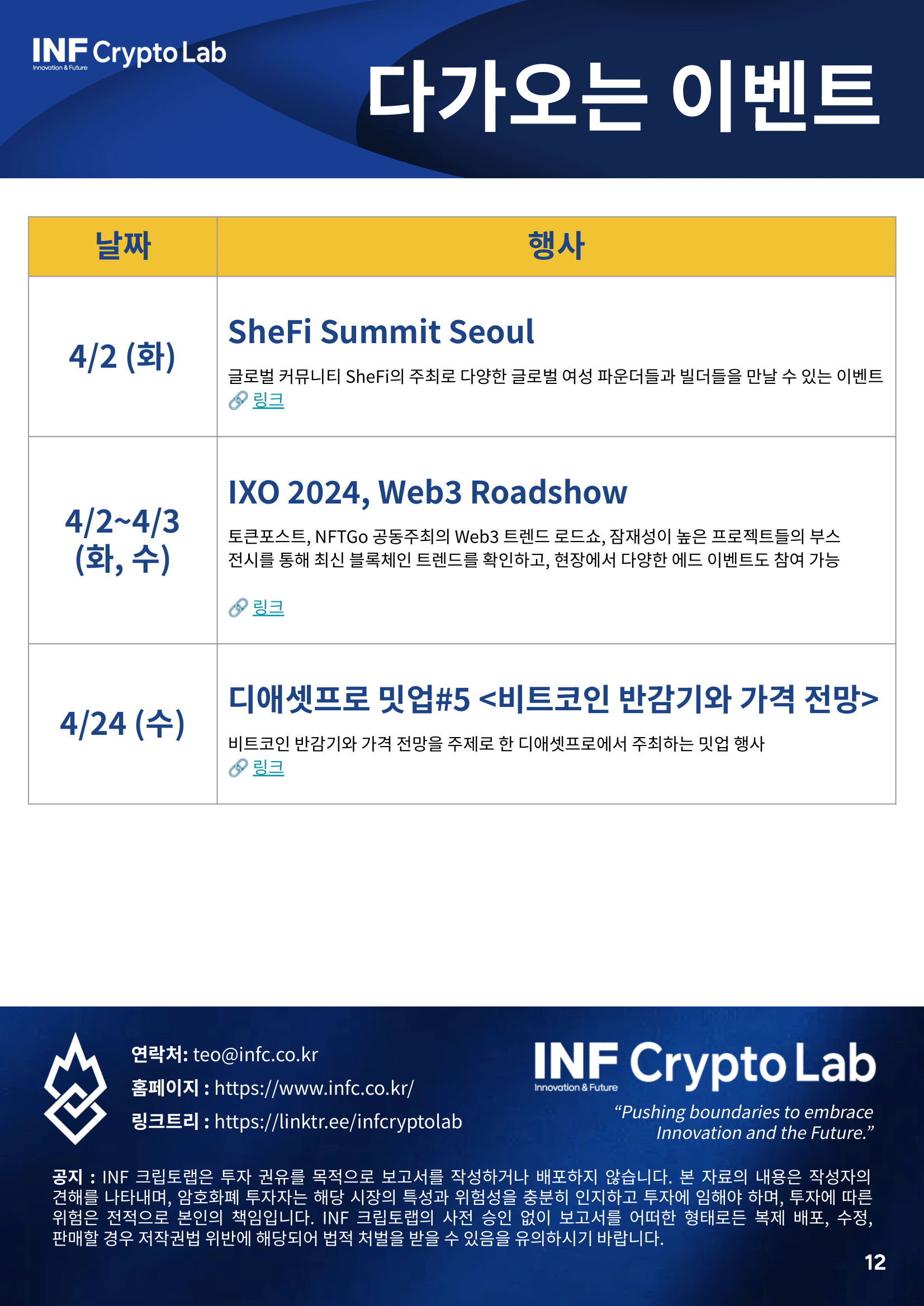 (KR) 위클리 리포트2024 APR WK.1 타오르는 불장, 폭발하는 베이스INF CryptoLabApr 01, 20241Share🔗INF CryptoLab 공식 링크📕원본 PDF 파일 확인하기