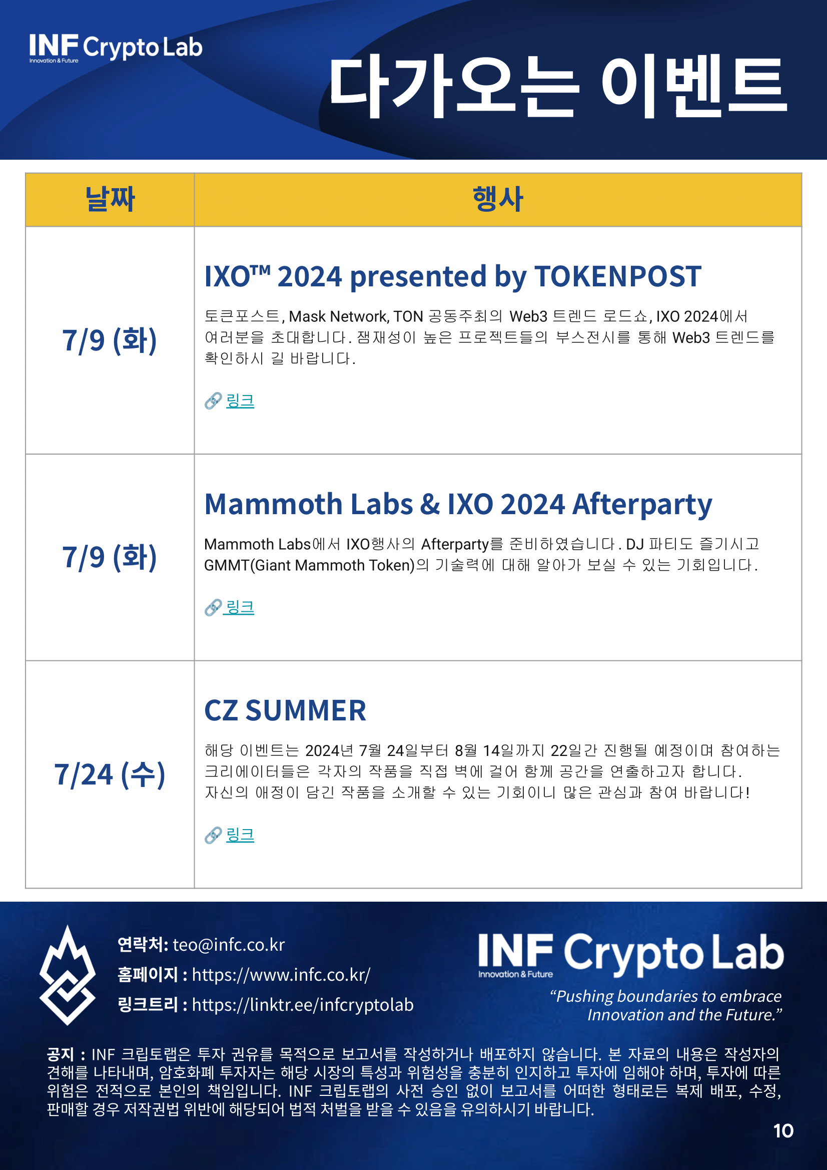 (KR) 위클리 리포트2024 JUL WK.2 탐욕은 사라지고 공포만 남았다INF CryptoLabJul 08, 2024Share🔗INF CryptoLab 공식 링크📕원본 PDF 파일 확인하기